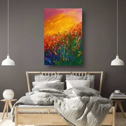 Kleurrijk abstract bloemenweide schilderij canvas