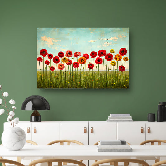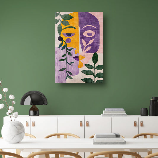 Kleurrijk schilderij van bloemen en bladeren canvas