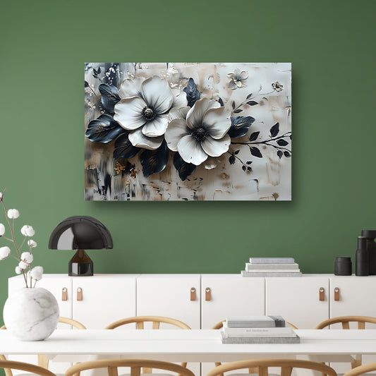 Abstract minimalistisch bloemenontwerp in zwart-wit canvas