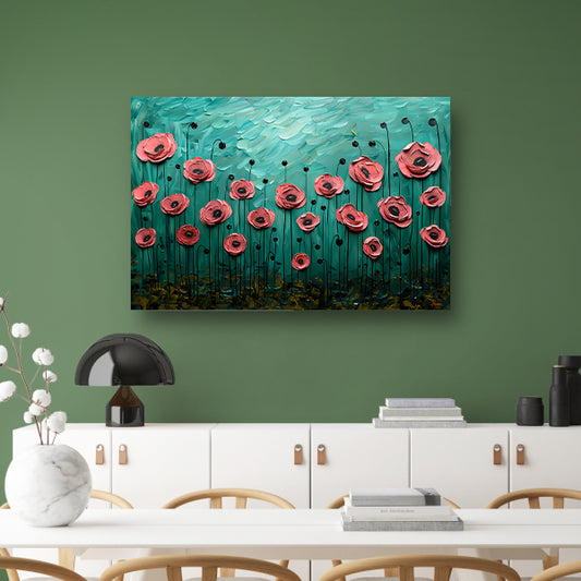 Abstracte vogel en bloemen op rode achtergrond canvas