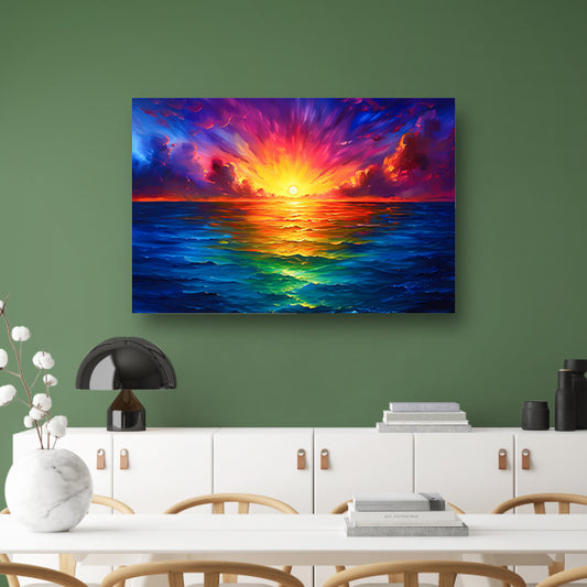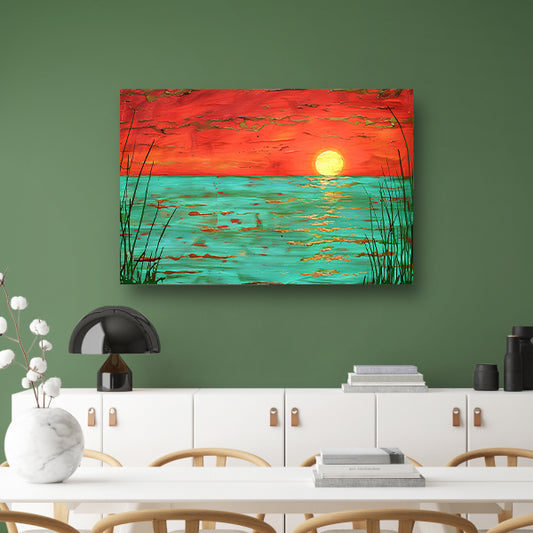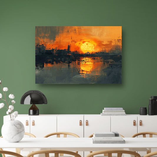 Minimalistische schildering van kleurrijke zonsondergang canvas