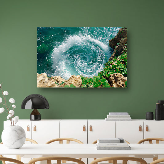 Abstracte waterwerveling bij rotsachtige kust canvas