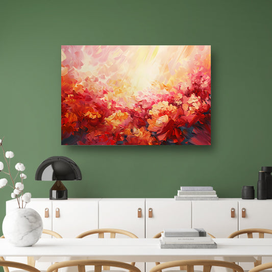 Kleurrijk abstract bloemenveld in warme tinten canvas