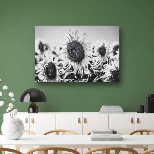Elegante zwart-wit zonnebloemen, natuur in monochroom canvas