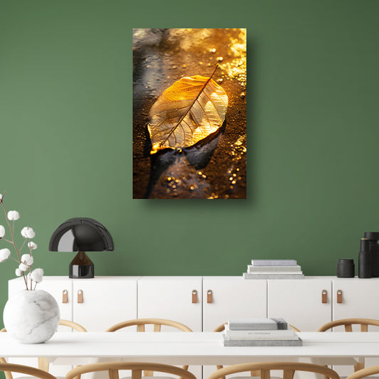 Gouden veer op donkere wateroppervlakte bij zonsondergang canvas