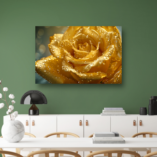 Gouden roos met waterdruppels op delicate bloemblaadjes canvas