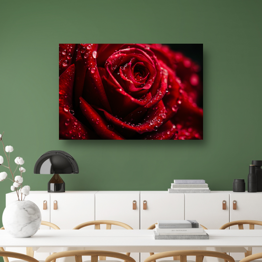 Rode Roos met Waterdruppels in Close-up canvas
