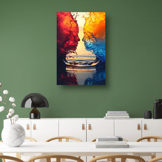 Twee Abstract Gezichten in een Kleurrijk Omhelzing canvas