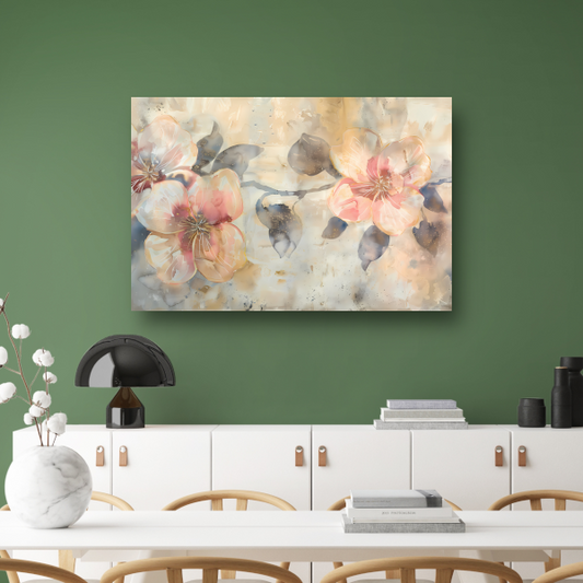 Bloeiende abstractie in aquarel met zachte tinten canvas