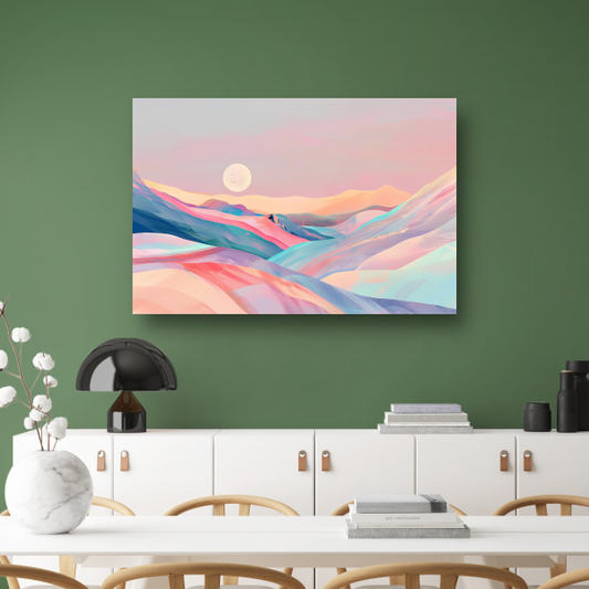 Abstract landschap in pastelkleuren met prominente maan canvas
