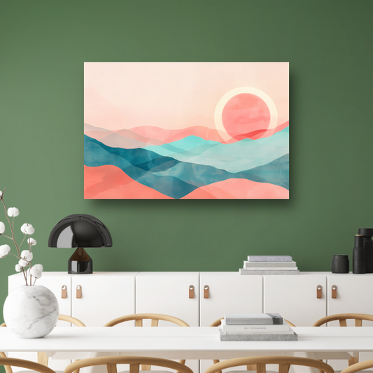 Abstract landschap met zonsondergang in pasteltinten canvas