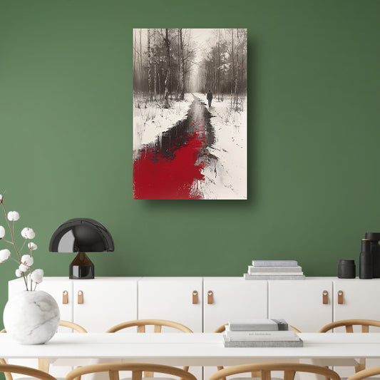 Eenzame figuur in een met bloed bevlekt bos canvas