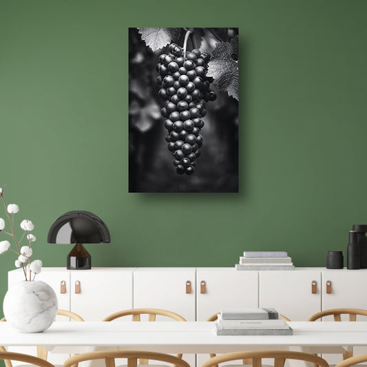 Zwart-witfoto van een tros druiven met bladeren canvas