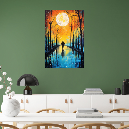 Silhouet Tegen Kleurrijke Mozaïek Achtergrond poster