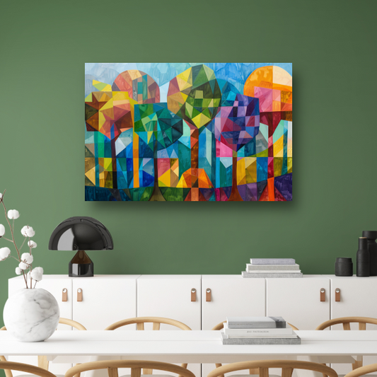Abstracte kleurrijke bomen in geometrische stad canvas