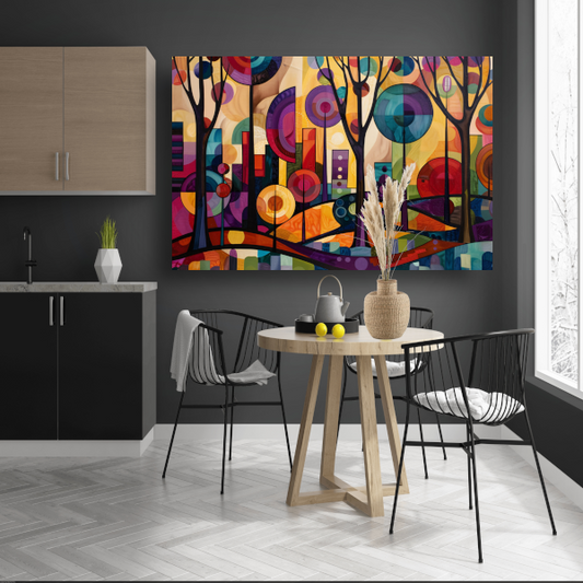 Kleurrijke Abstracte Stadsbomen in Dynamiek canvas