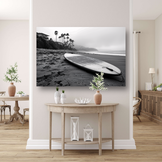 Sepia Surfplanken en Palmbladeren Collage canvas