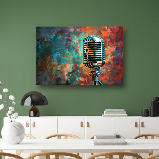 Retro microfoon met abstracte kleurenspatten poster