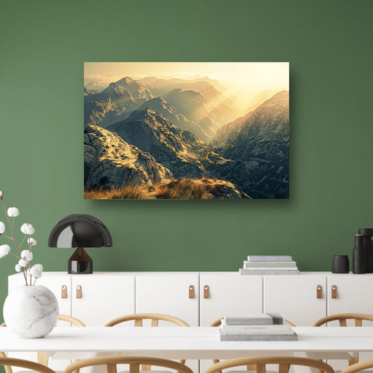 Majestueuze bergen bij zonsopgang in sepia canvas