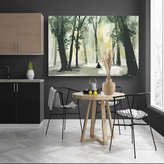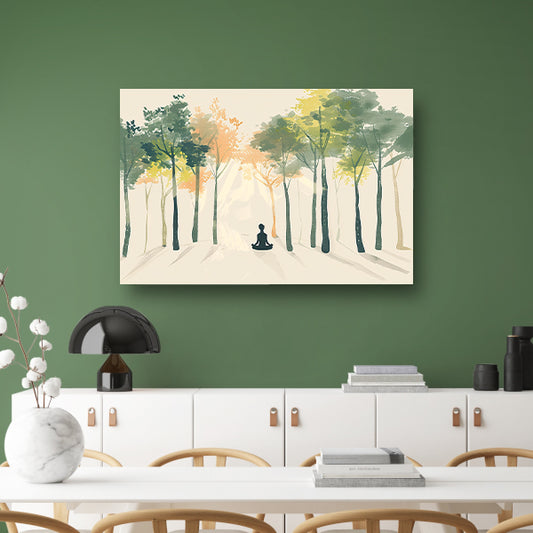 Meditatie onder de bosbomen canvas