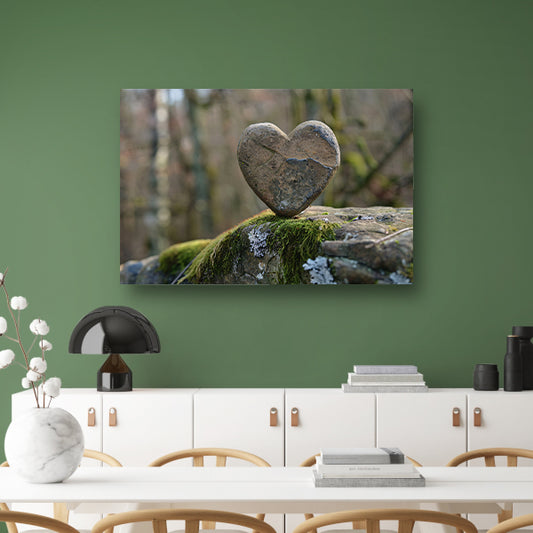 Hartvormige steen op mosbedekte rots canvas
