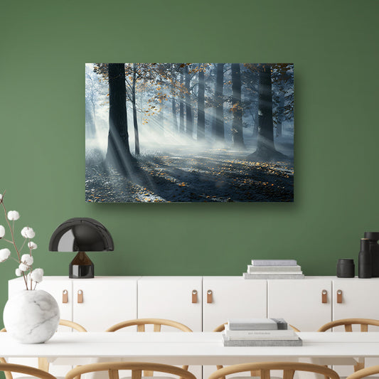 Mistig Bos met Zonnestralen en Schaduwen canvas
