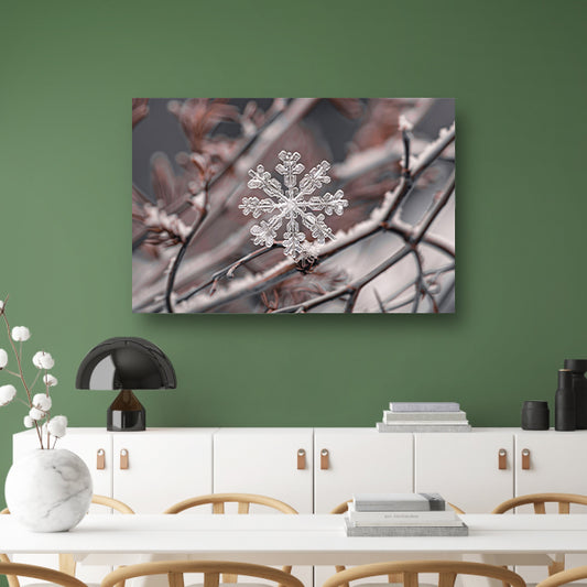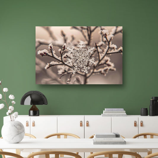 Macro-opname van een sneeuwvlok op takken canvas