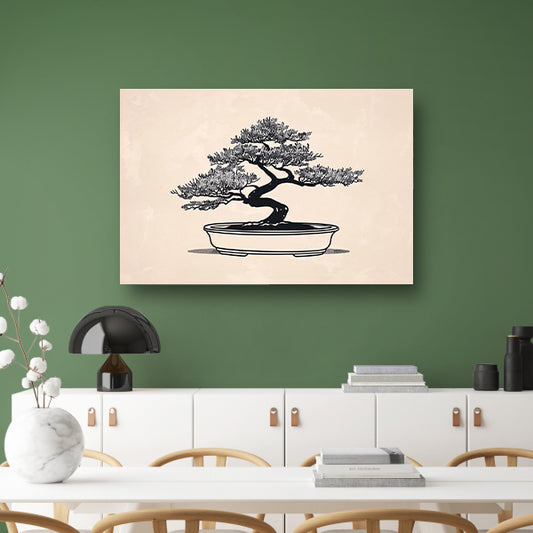 Minimalistische Bonsai Kunst in Zwart-Wit canvas