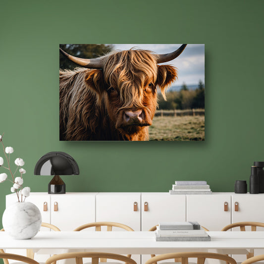 Schotse hooglander in een groen veld poster