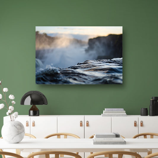 Waterval omhuld door nevel en mistposter