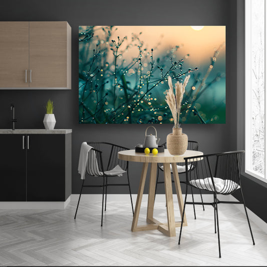 Subtiele ochtenddauw op delicate takkenposter