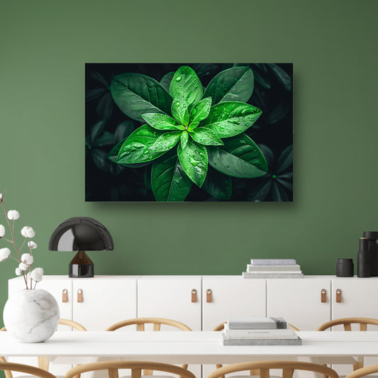 Levendige groene bladeren met dauwdruppelsposter
