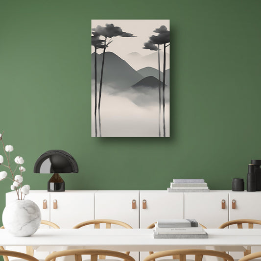 Minimalistisch landschap met mistige bergen poster