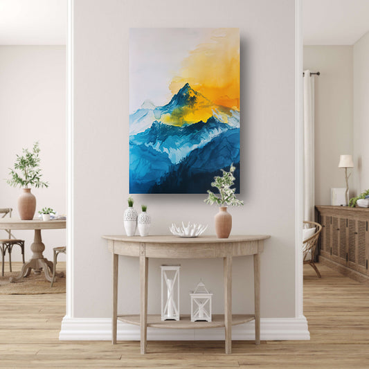 Abstract aquarel berglandschap in blauw en geel poster