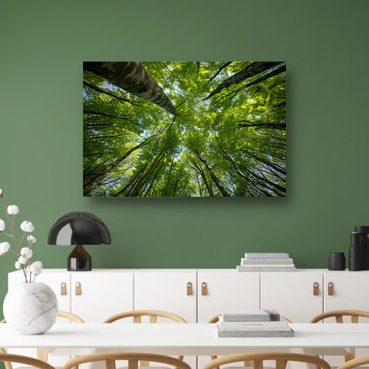 Bomen reiken naar de groene hemel canvas
