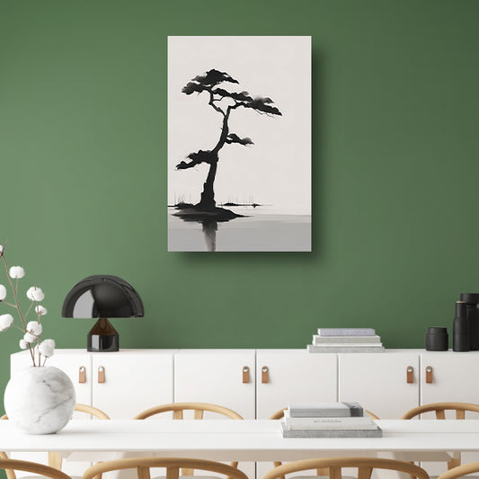 Minimalistische zwarte boom boven water poster
