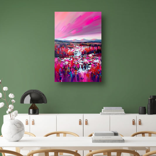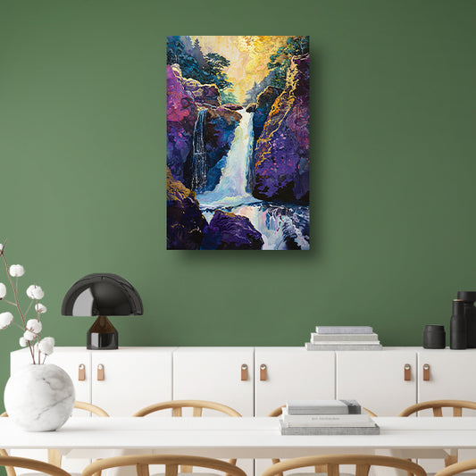 Kleurrijke abstracte waterval met levendig landschap poster