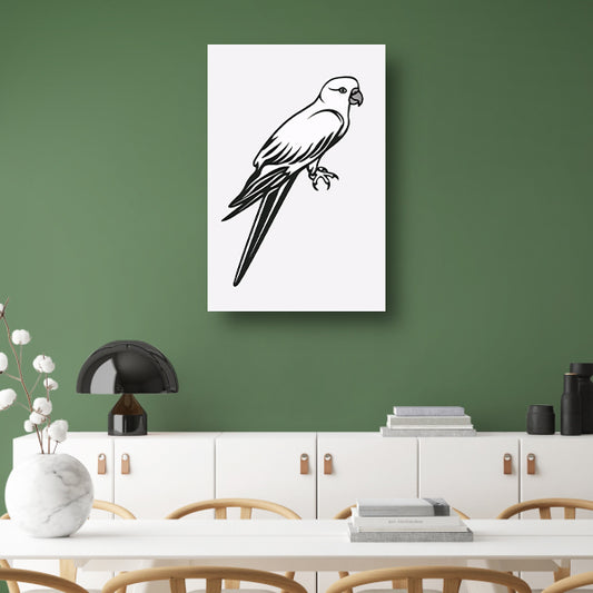 Minimalistische lijntekening van een papegaai op tak poster