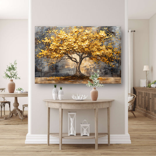 Boom met gouden bladeren tegen abstracte achtergrond poster