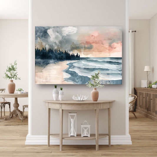 Surrealistisch strandlandschap met schilderachtige bomen poster