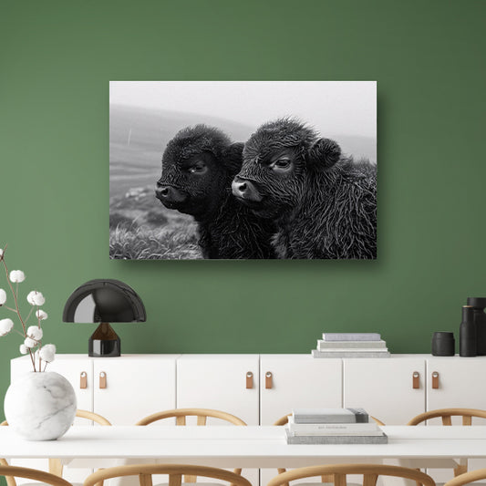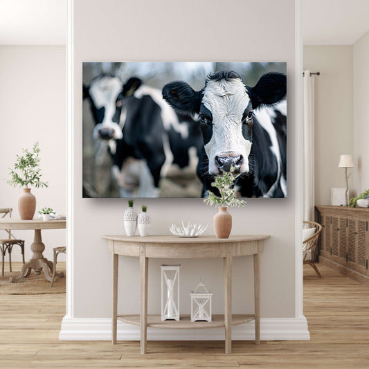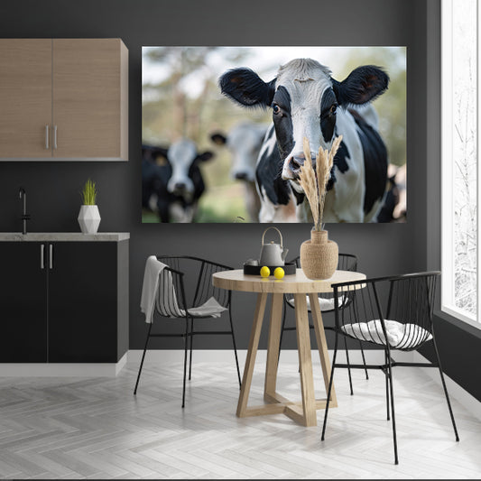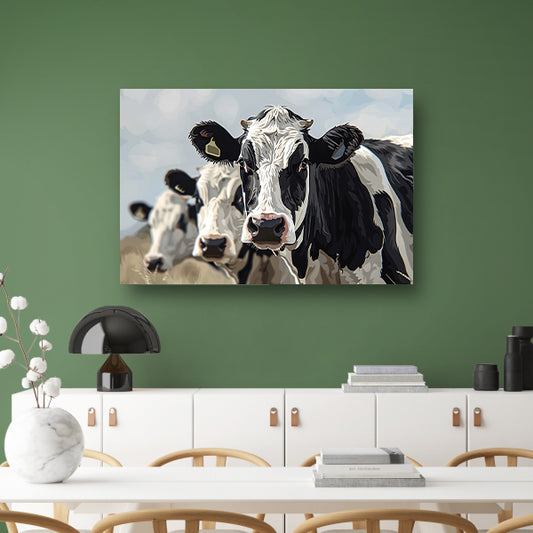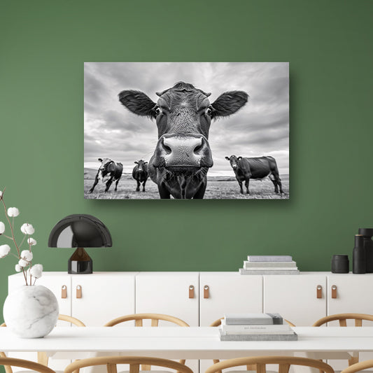 Close-up van nieuwsgierige zwart-witte koeien canvas
