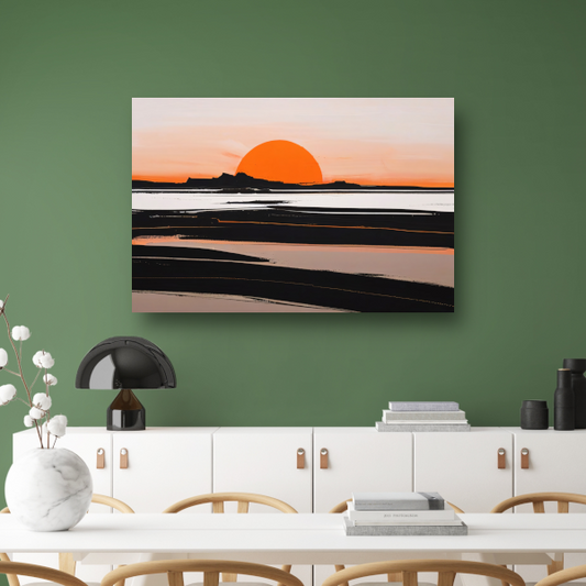 Zonsondergang en Silhouetten in Oranje en Zwart poster