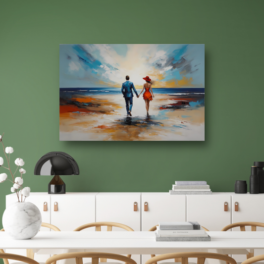 Romantische Strandwandeling met Kleurrijk Paar poster