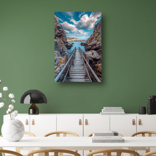 Houten Steiger Tegen Dramatische Zonsonderganghemel poster