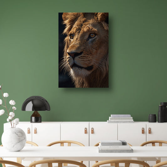 Close-up van leeuw met indringende blik poster