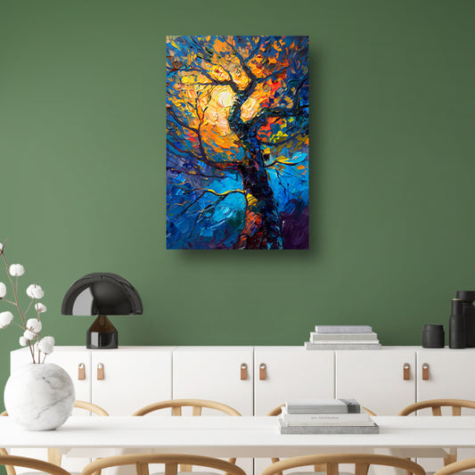 Dynamisch kleurrijk olieverfschilderij van een boom poster