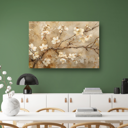Klassieke Bloesem op Textuurrijke Sepia Achtergrond poster
