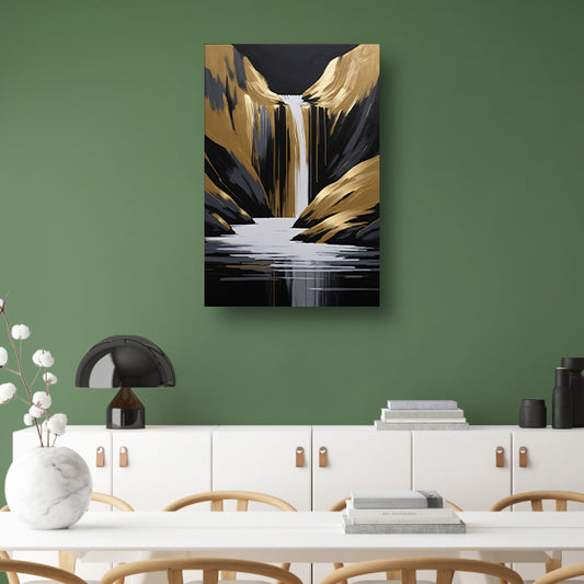 Gouden Accenten Abstracte Waterval Monochroom poster