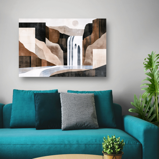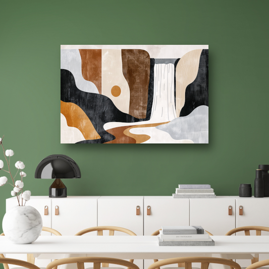 Abstracte Rivierlandschap in Aardetinten Monochrome Kunst poster