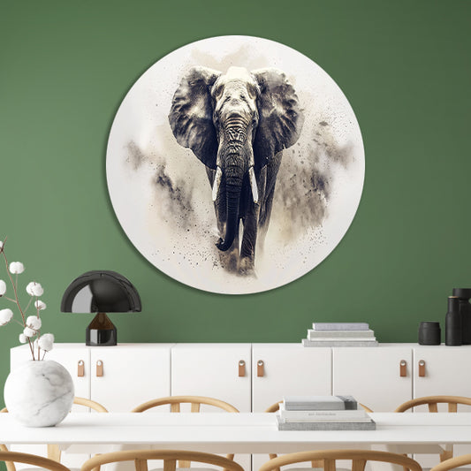 Mysterieus olifantenportret in rustieke stijl aluminium muurcirkel